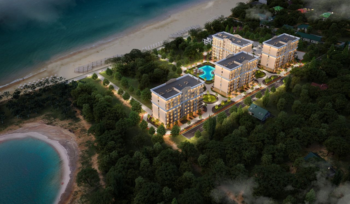на море и город. Апарт-комплекс распологается на первой береговой линии в поселке Заозерное. Внутри проекта есть развитая инфраструктура и наличие необходимых условий для комфортной жизни.