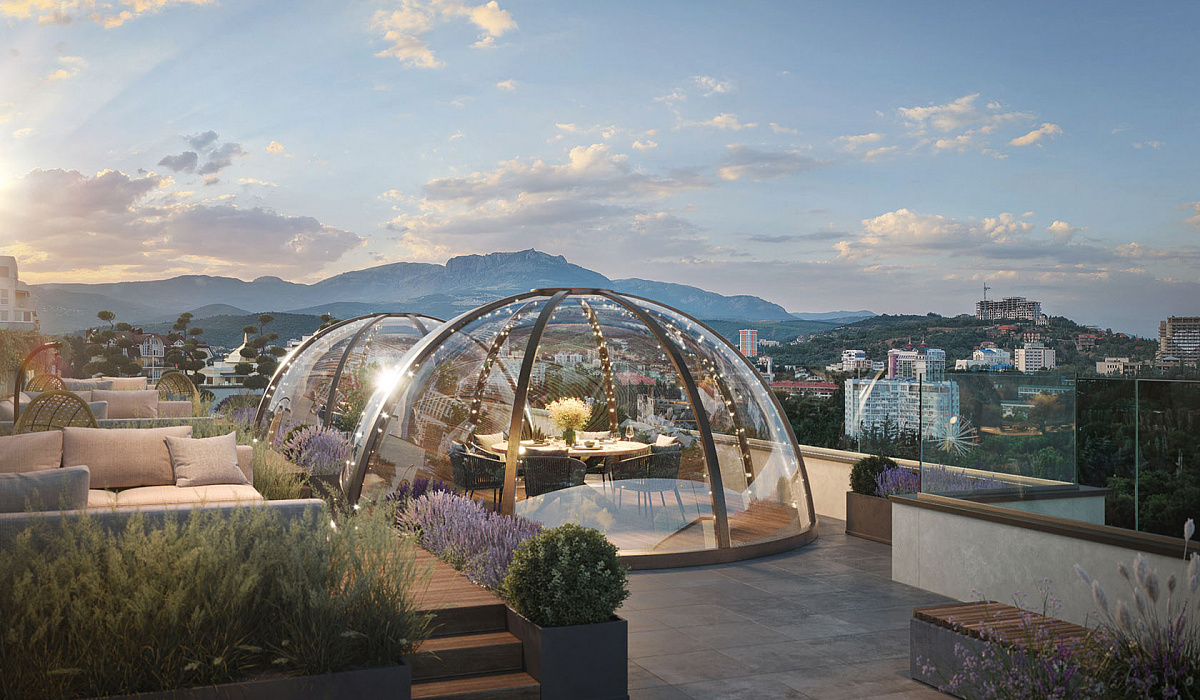 Южная резиденция премиальных апартаментов находятся в одном из красивейших и экологически чистых мест Южного Берега Крыма — в центре г. Алушта ул. Парковая 7,в 150 метрах от моря.Единственная в Крыму видовая терраса с приватным пространством и лаундж-зонами:Джакузи; Беседки-иглу; Зоны отдыха с камином; Летний кинотеатр; Зоны для занятий йогой; Spa с парными, хаммамом и купелью; Бар; Cлужба безопасности 24/7; Собственная сервисная компания. Благоустроенный пляж в 550 метрах