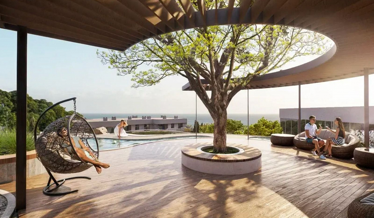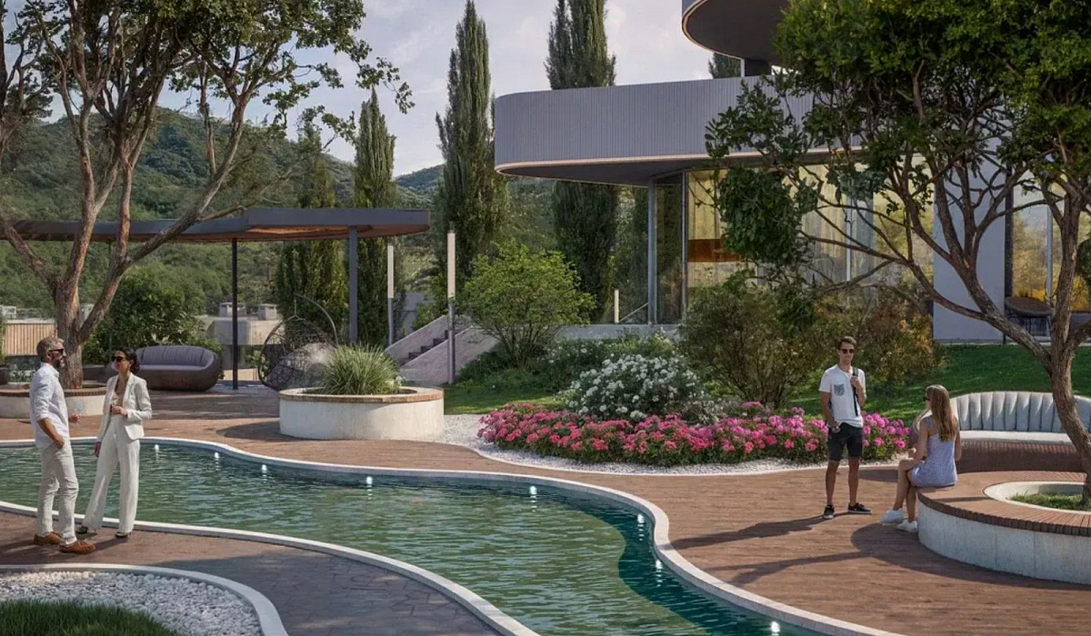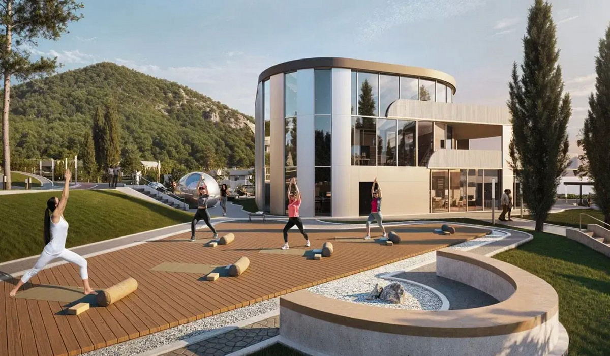 и отдыха: вертолётная площадка, конференц-пространство, круглосуточное видеонаблюдение и охрана, теннисный корт, термальные источники и процедуры грязелечения, ресторан, современный спортзал, открытый кинотеатр, подземный паркинг, детские и спортивные зоны, аллеи для прогулок, SPA-центр, лаундж-пространства и бассейн с морской водой.