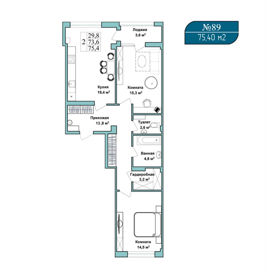 45.3 - 75.4 м²