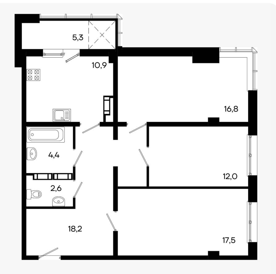 34.9 - 87.7 м²