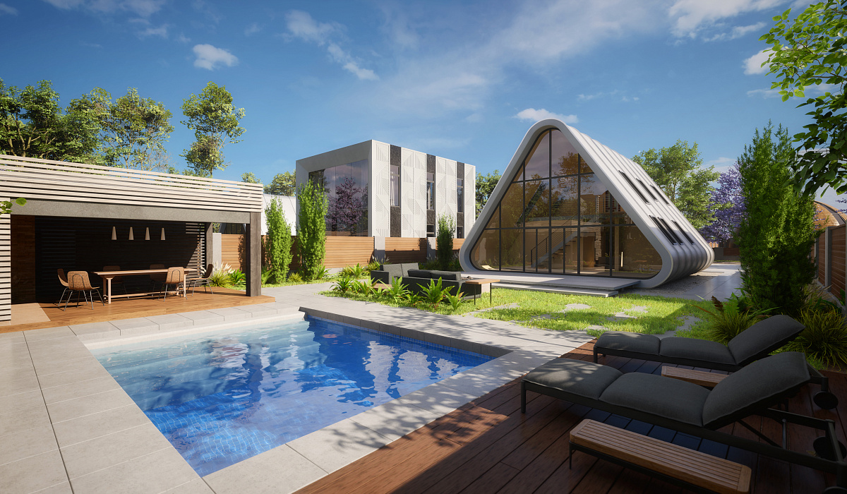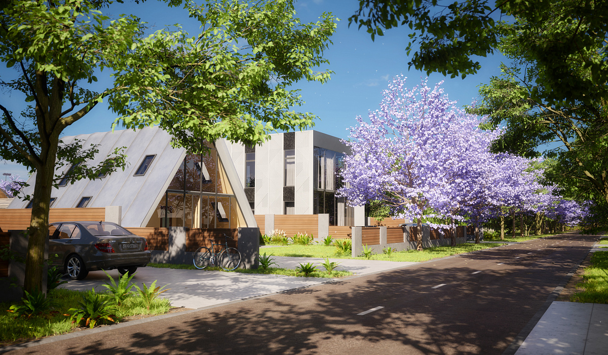 Все дома в атмосферном посёлке выполнены по авторским проектам со смелой геометрией и современным дизайном.