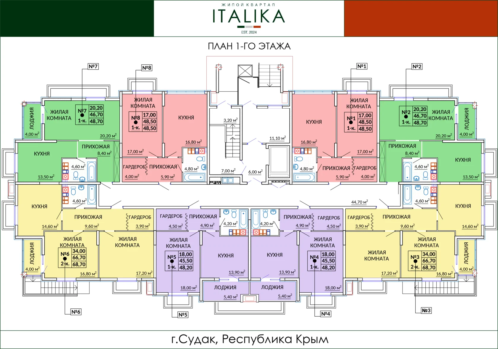 Жилой комплекс ITALIKA — это не просто место для проживания, а полноценный образ жизни, в котором гармонично сочетаются природа, комфорт и возможность для активного отдыха. Здесь каждый найдет что-то для себя: от занятий спортом и культурного досуга до спокойствия и уюта вашего нового дома. Жилой комплекс ITALIKA, расположенный в живописном городе Судак, представляет собой уникальное предложение для тех, кто ценит комфорт, уют и красоту природы окружающего мира. Этот современный комплекс занимает просторную территорию в 4,2 гектара, из которых целых 3 гектара отданы под благоустройство и озеленение.Территория комплекса полностью закрыта, что создает ощущение уюта и безопасности. Парковка на 211 машиномест находится в отдельной, специально отведенной зоне.