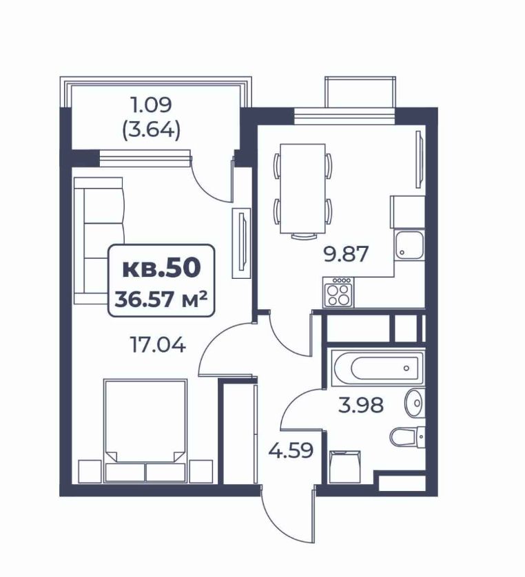 35.48 - 52.64 м²