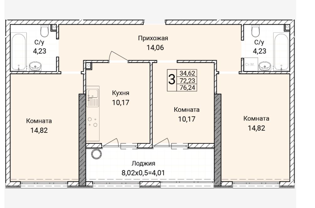 • от 33 до 76 м²