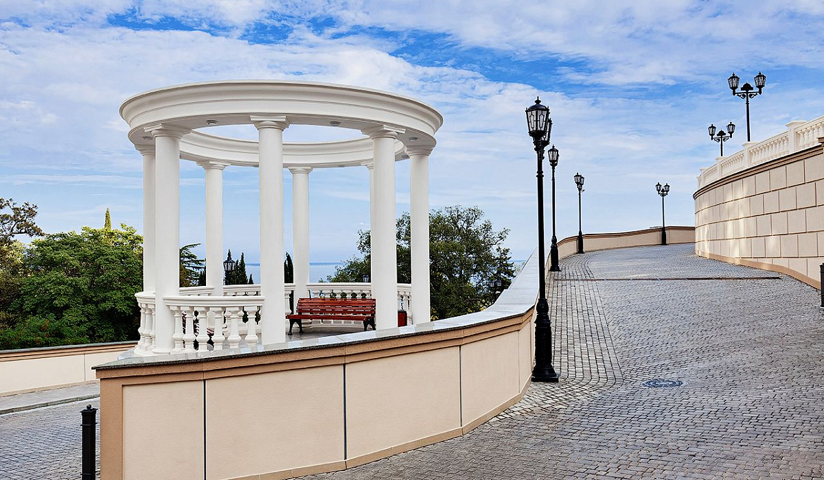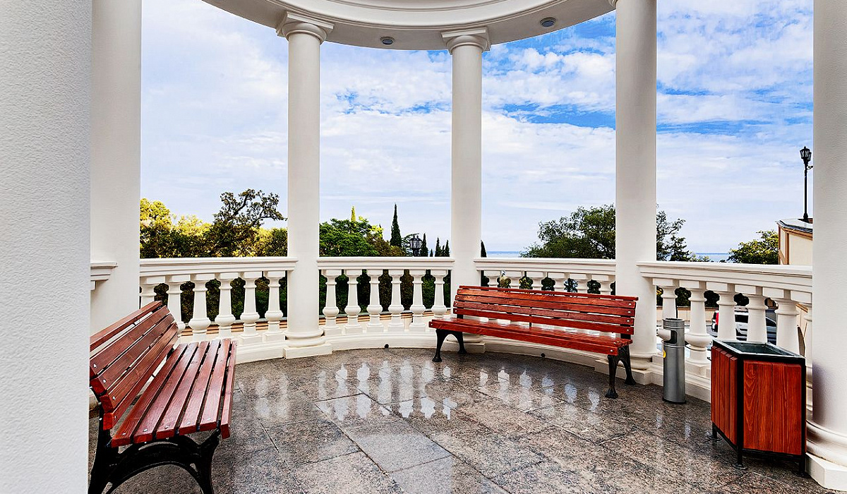 Местоположение Резиденции - парковая зона Ливадии - уникальный природный курорт. Здесь сочетаются горный и морской воздух и мягкий субтропический климат, что дает ему неоспоримое преимущество считаться эталонным курортом России. Рядом с комплексом находится бывшая дача Л.И.Брежнева и санаторий ЦК КПСС. Это одно из признанных мест для отдыха и восстановления здоровья, попасть в которое стремилась вся партийная верхушка прошлых лет.