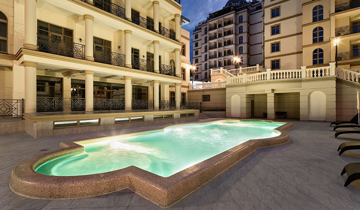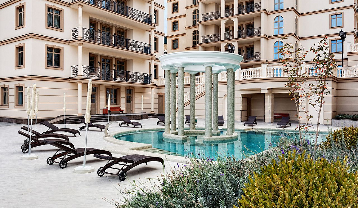 Резиденция «Дипломат» состоит из 8-ми этажных корпусов и одного 5-ти этажного здания, на первом этаже которого расположен ресторан итальянской кухни «Дон Сильвио». Собственная закрытая и охраняемая территория, подземный паркинг, три открытых бассейна, СПА-центр с крытым бассейном, детская и спортивная площадки – все это входит в состав инфраструктуры комплекса и доступно всем жителям и гостям Резиденции. Оборудованный пляж находится в 15 минутах приятной прогулки по территории соседнего санатория.