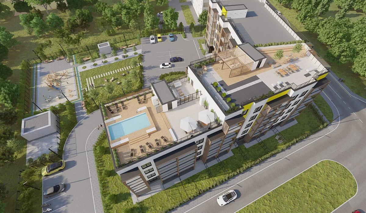 Главная фишка проекта собственный бассейн на крыше. Также на эксплуатируемой кровле будет зона отдыха с Wi-Fi и место для занятия йогой.
