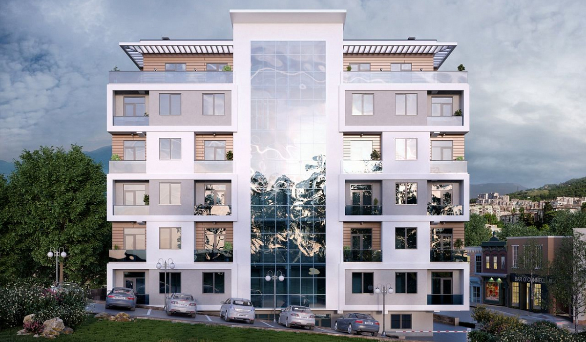 Клубный дом на 33 квартиры расположен в центре г. Судака, возле кипарисовой аллеи. В проекте предусмотрена собственная инфраструктура: зона ресепшен, детская игровая комната и площадка.