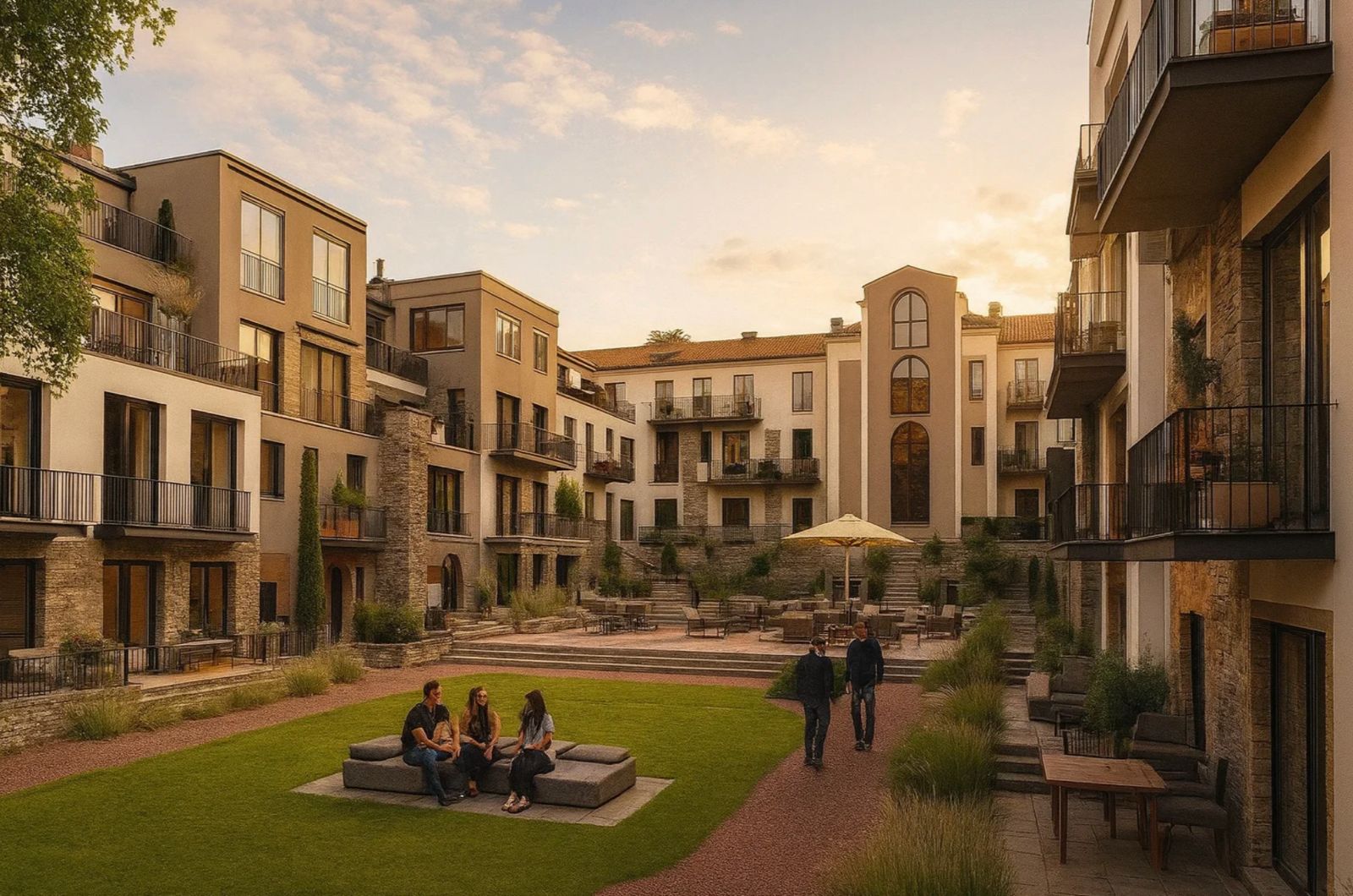 Современная архитектурная концепция с использованием премиальных материалов. Каждая деталь продумана для создания атмосферы курортного уюта и городского комфорта.