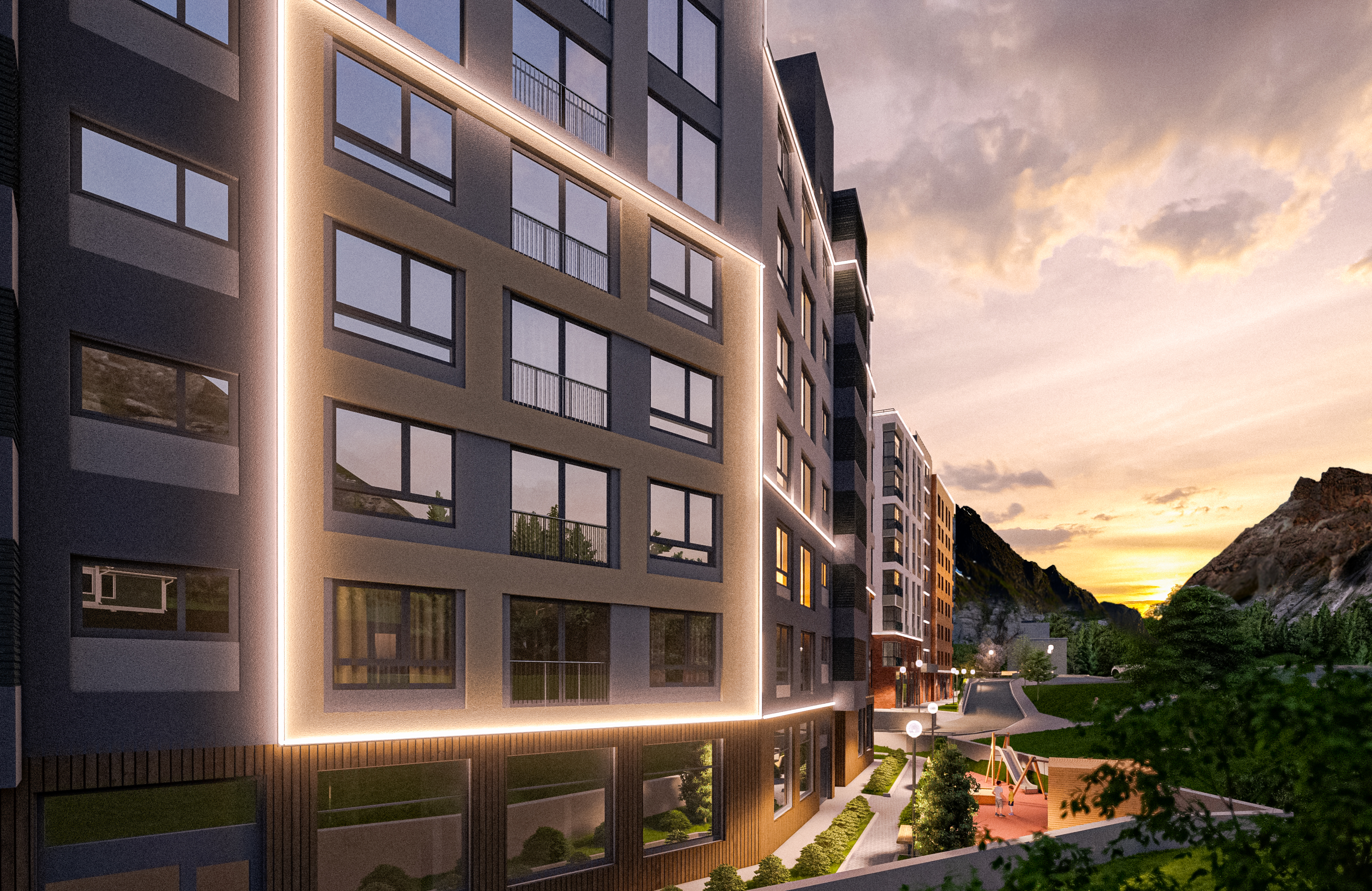Современная архитектурная концепция с использованием премиальных материалов. Каждая деталь продумана для создания атмосферы курортного уюта и городского комфорта.
