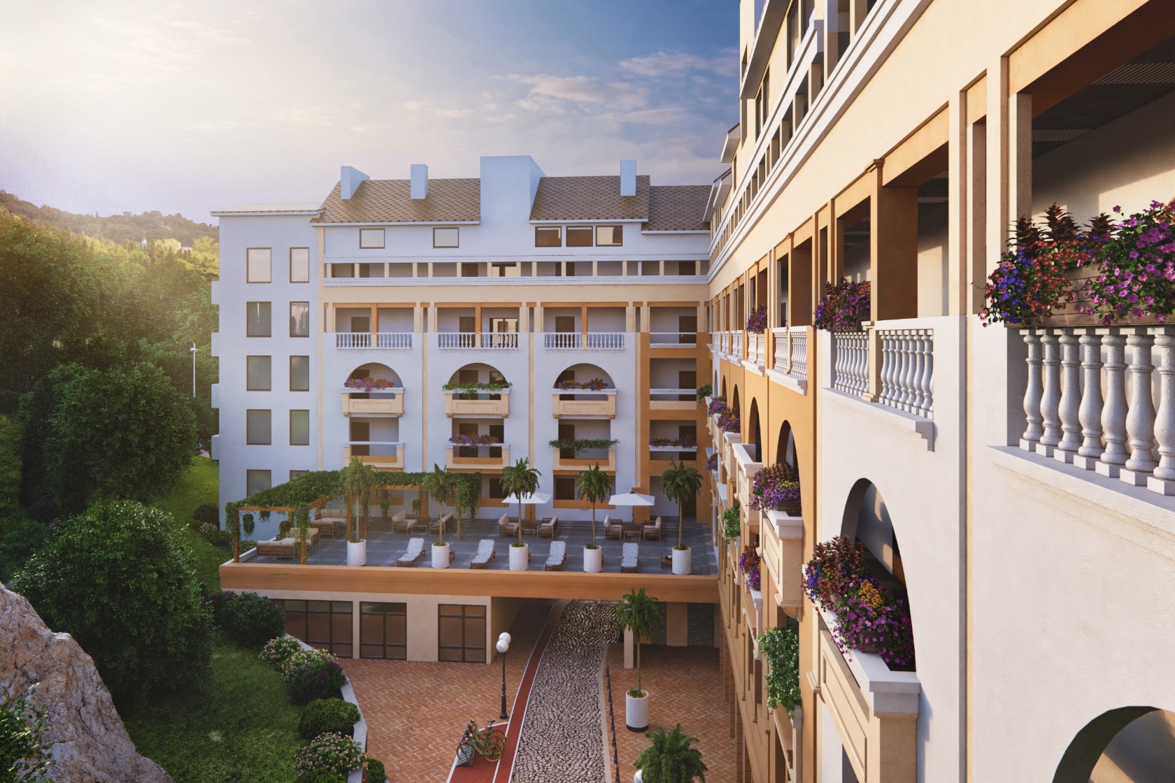 Современная архитектурная концепция с использованием премиальных материалов. Каждая деталь продумана для создания атмосферы курортного уюта и городского комфорта.