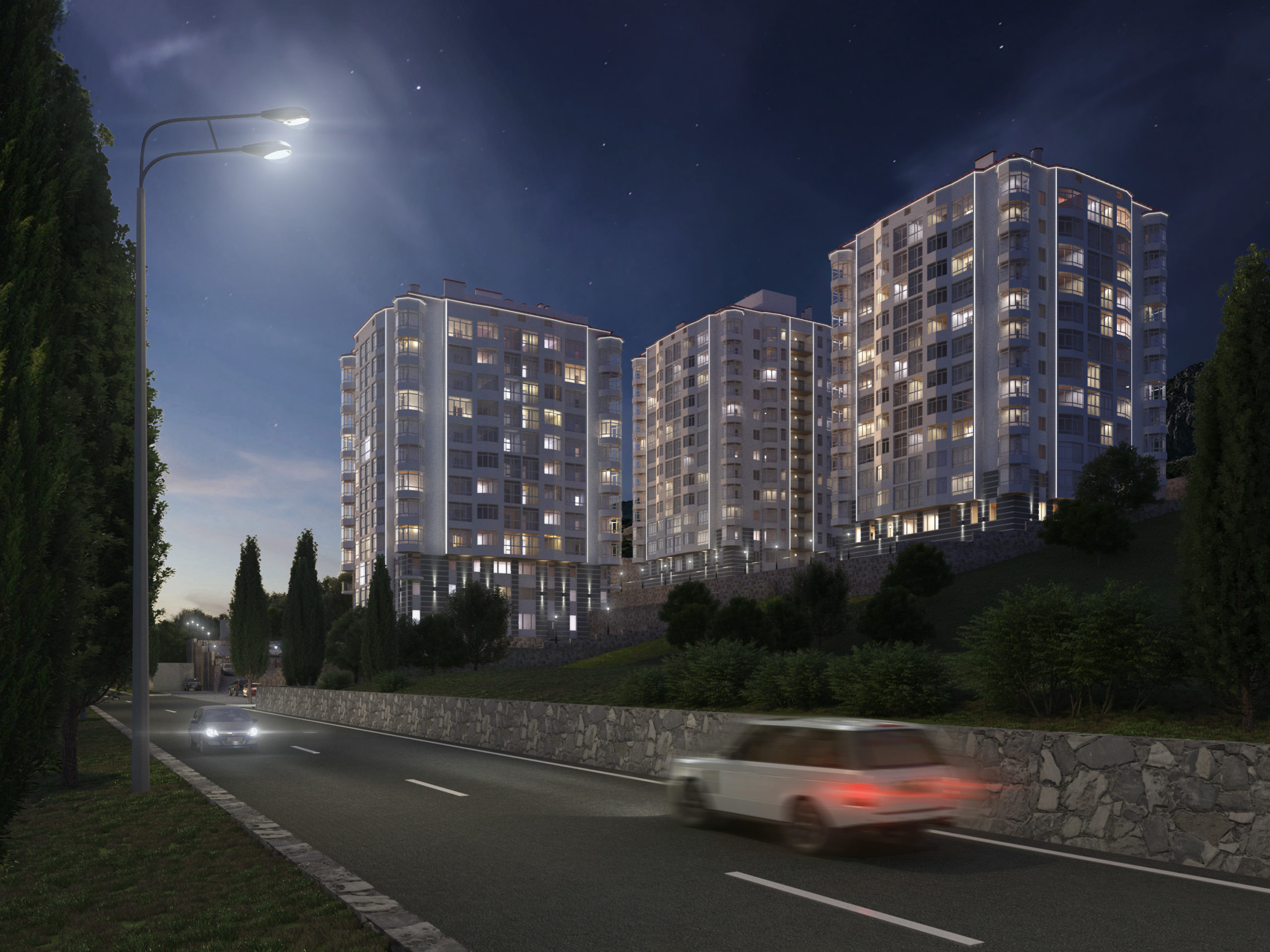 Современная архитектурная концепция с использованием премиальных материалов. Каждая деталь продумана для создания атмосферы курортного уюта и городского комфорта.